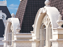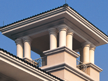 EPS構件以高強度阻燃型聚苯乙烯為基體,耐堿玻璃纖維網格布作為中間層,外層由無機抗老化聚合物乳液復合成型。電腦控制線切割,尺寸精確;產品自重輕,安全性高;徹底解決熱橋問題;安裝簡便,易搬運。上世紀80年代率先開始在歐美等國廣泛應用,是傳統(tǒng)GRC構件的劃時代升級產品。主要適用于歐式風格小區(qū)、酒店及商業(yè)街等建筑二樓以上檐角線、腰線及庭柱等部位。